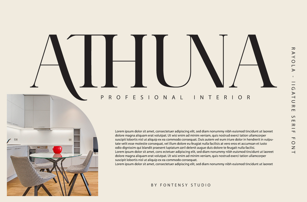 Rayola is a stylish font that is both retro and bold font. It's thick curves give a 70s groovy vibe with the serifs bringing it slightly back to traditional
